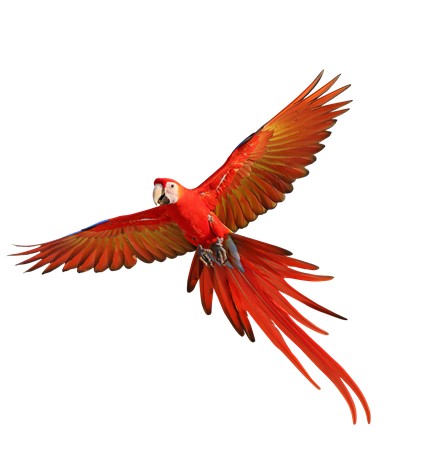 Nas florestas tropicais da América do Sul, América Central e México, muitas araras de cores vibrantes compartilham as árvores com papagaios de espécies próximas. Uma dessas aves, chamada arara-vermelha, também conhecida como arara-vermelha-e-azul, possui penas vermelhas brilhantes com detalhes em azul e amarelo nas asas e na cauda. Araras-vermelhas voando juntas formam um espetáculo belíssimo, quase como um arco-íris cortando o ar! Essa arara está entre as maiores, medindo de 80 a 90 centímetros do bico à ponta da longa cauda.
