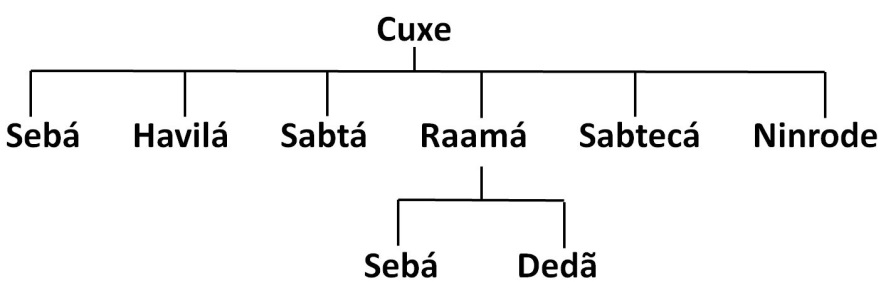 2. Alguns provavelmente estavam localizados na Arábia, e Ninrode está claramente associado ao Oriente; de modo que, embora como um distrito Cuxe possa geralmente se referir à África, os cuxitas devem ter tido uma extensão muito mais ampla. Parece claro também a partir de Gênesis 2:13 que mesmo geograficamente o nome Cuxe, ou Etiópia, também foi aplicado a uma região da Ásia.