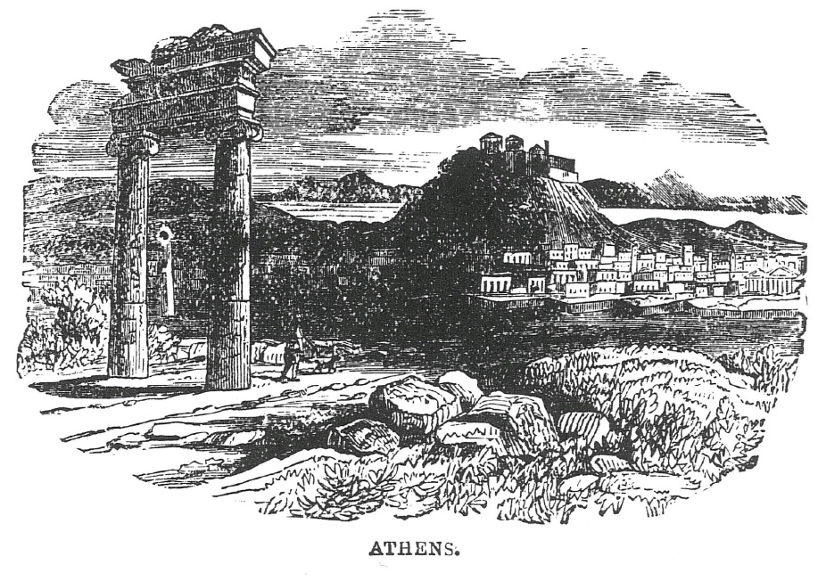 A principal cidade da Ática e a sede do aprendizado e da arte grega. A cidade estava totalmente entregue à idolatria, e as pessoas passavam seu tempo vagando e perguntando “quais são as novas?” Paulo trabalhou sozinho em Atenas, enquanto esperava por Silas e Timóteo, e procurava disputar com os judeus em sua sinagoga e no mercado diariamente; então, certos filósofos o levaram para o areópago, onde ele fez seu memorável discurso a ouvintes civilizados, mas pagãos. Houve alguns frutos de seu trabalho (At 17:15-22, 18:1; 1 Ts 3:1). Atenas era uma cidade antiga e passou por muitas mudanças e diferentes formas de governo.
