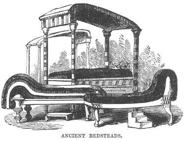 No Oriente, as camas eram simplesmente esteiras que podiam ser enroladas pela manhã e colocadas em qualquer canto. Isso explica por que as pessoas que foram curadas foram instruídas a “tomar” suas camas (Mt 9:6; Mc 2:9, 11-12; Jo 5:8-12). Para cobrir, bastava uma colcha e, no frio, outra mais grossa; mas muitas vezes eles usavam suas próprias vestimentas: isso explica a lei que uma vestimenta tomada em penhor seria restaurada quando o Sol se pusesse, para que o dono pudesse dormir em sua própria roupa, ou vestimenta externa (Dt 24:13). Como estrados, costumavam-se usar sofás simples e, onde não havia quarto separado, o divã em um lado da sala, que era usado para reclinar-se durante o dia, servia de estrado à noite. Sem dúvida, sofás leves que podiam ser movidos também eram usados como estrados (2 Rs 4:10), sob os quais uma lâmpada poderia ser colocada (Mc 4:21), e sobre os quais o homem foi baixado pelo telhado (Lc 5:19). A cama de Ogue, o rei gigante de Basã, era de ferro, com 9 côvados de comprimento (4,10m) e 4 côvados de largura (1,82m) (Dt 3:11).