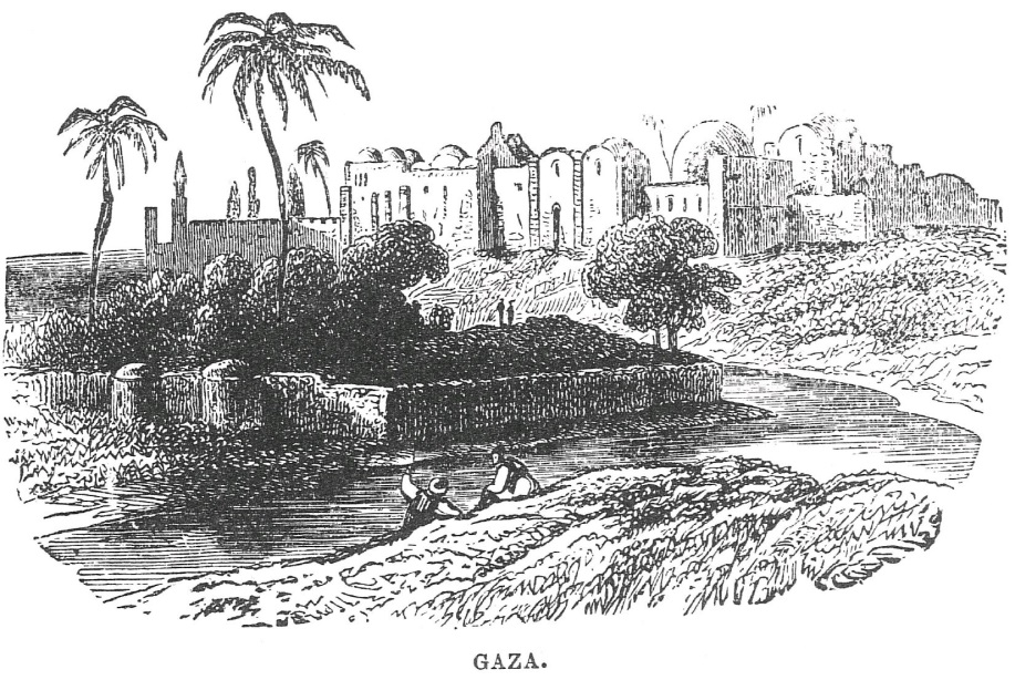 Gaza era a cidade da fronteira da Palestina ao sudoeste, e fazia um grande comércio com as caravanas que vinham e iam para o Egito. Foi tomada por Cambises, pelos Ptolomeus e por Alexandre, o grande, e foi mantida no século 12 pelos Cavaleiros Templários. Agora é a capital da província turca. Ainda é uma cidade grande, embora dispersa, sem muralhas, a cerca de 3km do mar, embora em alguns dos documentos antigos seja chamada de cidade marítima. É agora chamada de Guzzeh ou Gaza, 31°30’N, 34°28’E. Atos 8:26 significa que o caminho de Jerusalém a Gaza era deserto. Supõe-se que isso se refira à estrada que passa por Hebrom, pois, depois de deixar aquela cidade, ela fica comparativamente deserta.