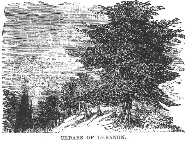 A região oeste é o Líbano geralmente referido na Escritura e aquele de onde Salomão obteve cedro e faias para o templo (1 Rs 5:8-9; Sl 29:5; Is 14:8). Dos cedros, apenas alguns permanecem. Há muitas aldeias situadas nas pequenas planícies das montanhas, com pequenas porções de grãos crescendo aqui e ali. Também são cultivadas vinhas, de onde se faz um excelente vinho (Os 14:7). As faias crescem, agarrando-se por assim dizer à rocha nua, mas bastante seguras (Os 14:5). Azeitonas, figos e amoras também abundam, e vários arbustos aromáticos que perfumam o ar, conforme aludido em Cantares de Salomão 4:11. Os animais selvagens ainda habitam os vales e picos como faziam nos tempos do Velho Testamento (2 Rs 14:9; Ct 4:8; Hc 2:17). Seu nome moderno é Jebel Libnan.