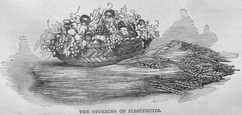- Assim como Deus reivindicou o primogênito do homem e dos animais, ele também reivindicou o primeiros frutos das primícias, para que eles pudessem ser apresentados como um reconhecimento de que Deus era o doador deles, e agradecimento por Seus dons. Todos os machos deviam se apresentar três vezes no ano diante de Deus, e essas ocasiões eram organizadas nos momentos da colheita da cevada (na Festa dos Pães Asmos); do trigo (na Festa das Semanas); e na vindima (na Festa dos Tabernáculos) (Êx 23:16, 19, 34:22, 26; Dt 18:4, 26:10; Ez 48:14).