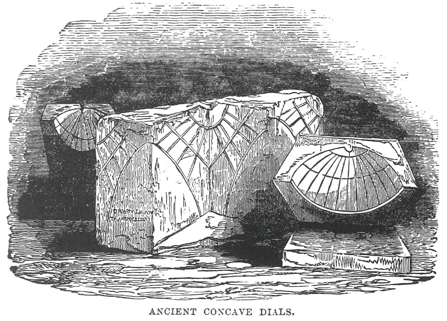 [161] N. do T.: instrumento composto geralmente de uma haste vertical que, pela projeção de sua sombra sobre um plano horizontal, indica a altura do Sol e as horas do dia (cf. Dic. Aulete). ↑