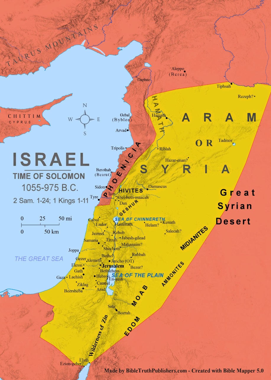 Salomão amava ao Senhor e O adorava no altar em Gibeão, e ali o Senhor apareceu a ele em um sonho e disse: “Pede o que quiseres que te dê”. Salomão pediu um coração entendido para julgar o povo com sabedoria. A escolha agradou a Deus, e Ele lhe deu sabedoria como nenhum rei antes nem depois teve, e acrescentou a ela riquezas e honra além de todos os outros. Se ele fosse obediente, Deus prolongaria seus dias. Sua sabedoria logo se tornou evidente por seu julgamento no caso das duas mulheres com o filho vivo e o filho morto. E pessoas vieram de todos os reinos da Terra para ouvir sua sabedoria. A rainha de Sabá também veio. Isso é mais uma vez um símbolo do reinado de Cristo durante o Milênio. É ainda exemplificado por toda a habitação em segurança, “cada um debaixo da sua videira e debaixo da sua figueira, desde Dã até Berseba, todos os dias de Salomão”.