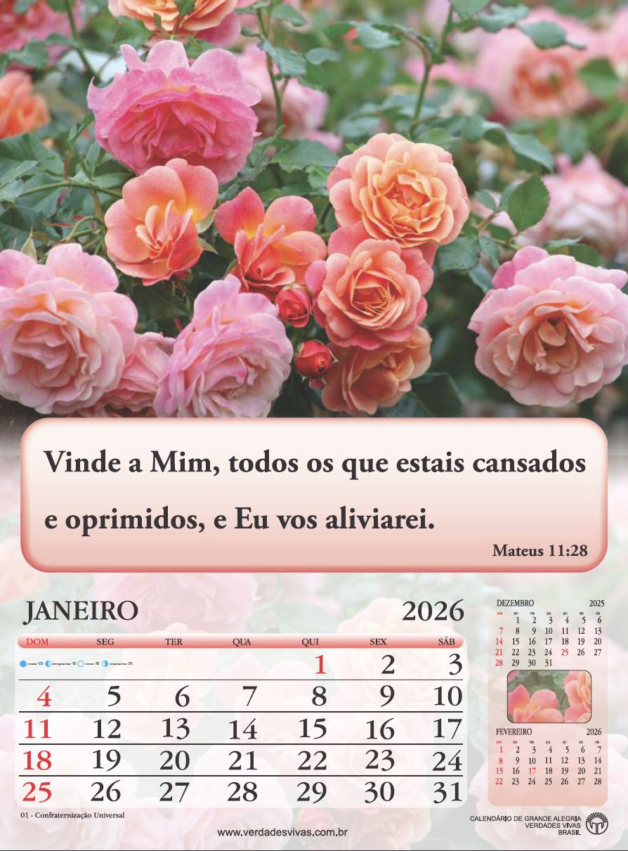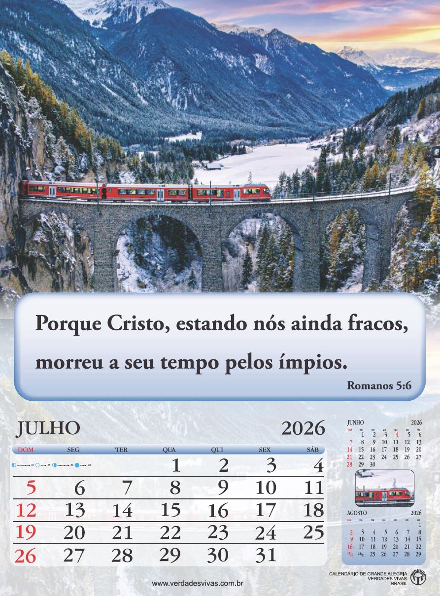 Calendário de Parede com versículos bíblicos com 12 páginas colorido – medidas 21cm x 28cm
