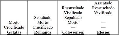 Com frequência se fala que a verdade mais exaltada em toda a Bíblia é encontrada na epístola aos Efésios. Há uma nítida progressão da verdade em conexão com nossa identificação com Cristo nas epístolas de Paulo. A saber: