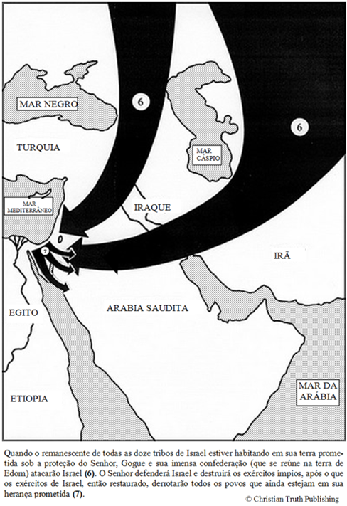 Então, quando um remanescente de todas as doze tribos de Israel estiver morando em segurança na sua terra sob a proteção do Senhor, será atacado pela última confederação das nações dos gentios sob Gogue – Rússia e seus confederados (Ez 38-39). Naquele tempo, o Senhor defenderá Israel destes exércitos rugindo desde Sião para destrui-los no que se chama “juízo da vindima” (Ap 14:17-20; Is 63:1-6; Jl 3:12-14). O Senhor irá de Jerusalém para a terra de Edom (as terras da Transjordânia, ao sudeste de Israel) para destruir os exércitos confederados de Gogue que serão reunidos lá (Is 34:1-10, 63:1-6; Hc 3:3-16). Depois disso, os exércitos do Israel restaurado sairão e possuirão sua inteira herança prometida a Abraão, expulsando quaisquer pessoas que restarem em sua legítima herança (Sl 47:3, 108:7-13; Is 11:14; Jr 51:20-23; Ez 39:10; Ob 17-20; Mq 4:13, 5:8). Isso marcará o fim de todas as guerras e o fim da indignação (Sl 46:9; Zc 9:10). Depois disso, o Milênio (o reinado de mil anos de Cristo) começará.