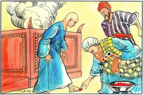 28 – “O sacerdote colocará o sangue na orelha direita, no polegar da mão direita e pé direito” – Lv 14:14
